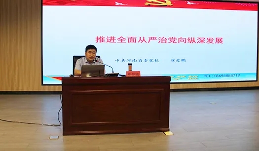隨后,河南省委黨校崔愛鵬教授作了題為《推進全面從嚴治黨向縱深發(fā)展》的專題培訓(xùn)。培訓(xùn)中,崔愛鵬教授從深刻理解新時代全面從嚴治黨向縱深發(fā)展的重大意義、全面把握新時代黨的建設(shè)的總要求、貫徹落實習(xí)近平總書記關(guān)于全面從嚴治黨的重要論述三個方面進行了全面剖析和深入解讀,以史實為依據(jù),深入淺出,娓娓道來,使大家充分認識到,“嚴”是立黨的初心品質(zhì),是治黨的鮮明特色,也是強黨的經(jīng)驗優(yōu)勢。堅持從嚴治黨,更是我們黨克服一切艱難險阻、完成歷史使命的重要政治優(yōu)勢,為集團學(xué)習(xí)黨史、了解黨史,進一步做好黨風(fēng)廉政建設(shè)和作風(fēng)建設(shè)工作提供了指南。