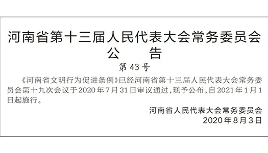 第一條 為了培育和踐行社會主義核心價值觀,引導(dǎo)和推動公民樹立文明觀念,促進(jìn)文明行為養(yǎng)成,提升社會文明程度,根據(jù)有關(guān)法律、行政法規(guī),結(jié)合河南省實際,制定本條例。
