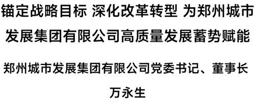 下面,為您推出鄭州城市發(fā)展集團有限公司黨委書記、董事長萬永生署名文章《錨定戰(zhàn)略目標 深化改革轉(zhuǎn)型 為鄭州城市發(fā)展集團有限公司高質(zhì)量發(fā)展蓄勢賦能》——
